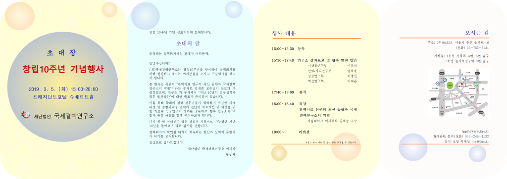 국제결핵연구소 창립 10주년을 맞이해 기념행사에 초대합니다.