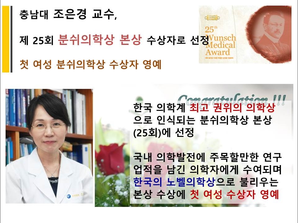 [대미] 충남의대 조은경 교수, 분쉬의학상 본상 수상